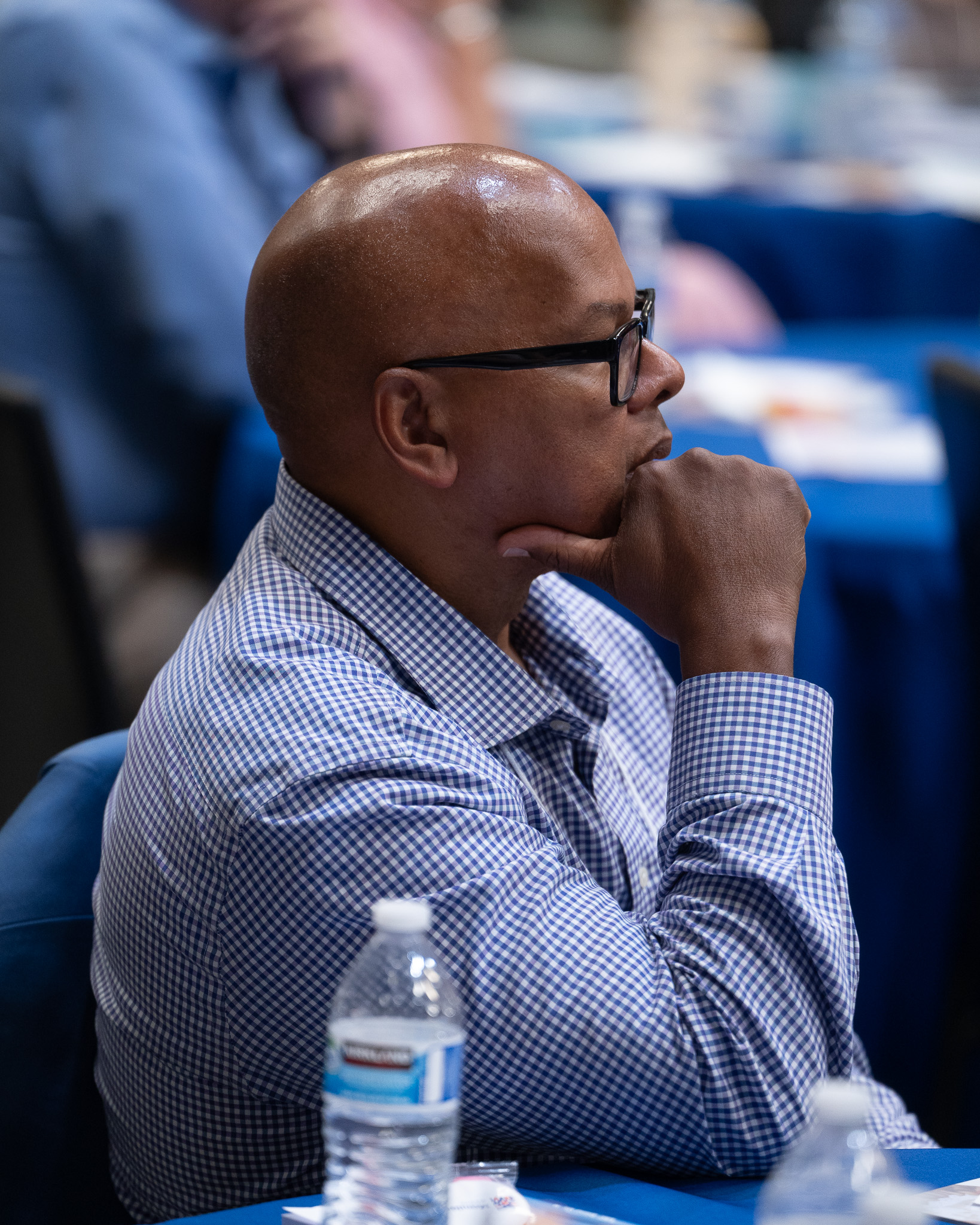 Pictured: Michael Haynes, Healthcare Operations Senior Consultant, Freed Associates, leading a group through the World Café Roundtable discussion “DxF Listening Tour: We Want to Hear From You”